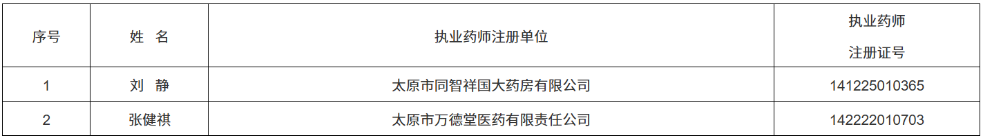 近期,太原市万柏林区市场监督管理局执法人员查实,注册单位为太原市同智祥国大药房有限公司、太原市万德堂医药有限责任公司的执业药师(具体名单附后)与实际工作单位不一致,不能保证在岗执业,不能履行执业药师法定职责。